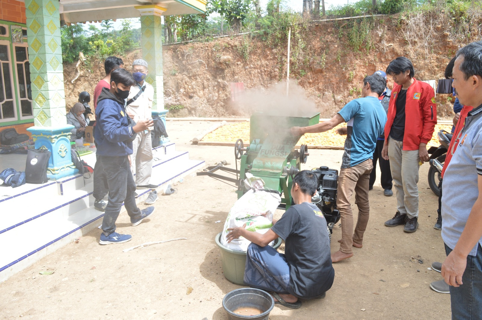 Tidak ada kendala berarti pada saat penyuluhan karena Bpk Dwi Djumhariyanto sangat fasih bahasa warga yang menjadi mitra pengabdian, Bahasa Madura. Sesuai harapan, para petani telah menyimpan kopi mereka setelah dikeringkan, tidak langsung dijual dalam keadaan basah, atau istilahnya kopi gelondongan. Mereka sangat antusias melihat kedatangan Tim KeRis TeMan yang datang dengan mesin yang mereka harapkan. Bergegas mereka ikut menurunkan mesin. Dan tanpa menunggu, mereka langsung ingin mencoba mesin pengupas kulit kopi ini. Pertama, Tim pengabdian dibantu para mahasiswa memberi contoh cara operasional mesin dan mencoba dua fungsinya sebagai mesin pulper dan mesin huller. Kemudian para petani diberi kesempatan untuk mencoba. Tanpa banyak kesulitan mereka segara menyatu dengan mesin baru ini.