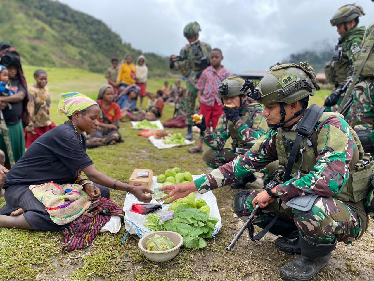 Prajurit Lintas Udara 432/WSJ melaksanakan Rosita (Borong Hasil Tani ) Di Distrik Mbua (06/06/24)